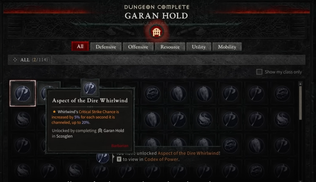 Le Codex de puissance est un système de jeu qui contient les aspects liés au personnage. Les joueurs peuvent compléter un donjon et avoir une chance de trouver un aspect qu'ils peuvent utiliser pour rendre les objets qu'ils trouvent dans le monde plus puissants, les transformant en objets légendaires.