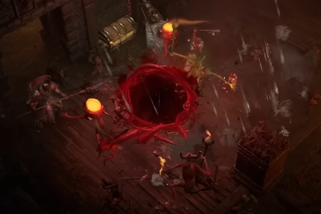 Les donjons de cauchemar permettent aux joueurs de revisiter des donjons déjà explorés avec un sigil qui modifie le style de jeu et l'intensité du donjon. Nous avons un exemple d'affixe dans la video qui est la "Porte des enfers" ou "Hellgate", qui ouvre des portails déversant différents monstres à affronter.