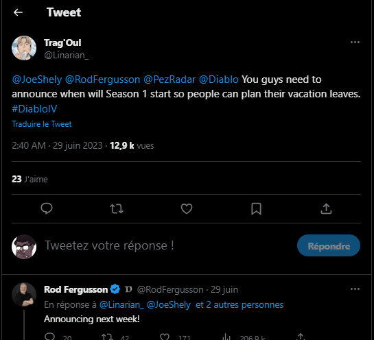 Il a ensuite été confirmé par le directeur général de Diablo, Rod Fergusson, que la date de sortie officielle de la Saison 1 sera annoncée la semaine prochaine !