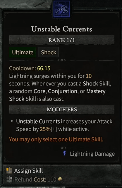 L’ultime Courant instable sera utile lorsque vous manquez de mana, et également pour burst les boss, en plus d’augmenter votre vitesse d’attaque de 25% avec un passif modificateur.