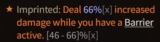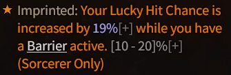 Étant donné que vous aurez presque tout le temps des barrières up, vous allez avoir un buff important de vos “Lucky hit” grâce à ce trait légendaire.