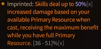 Il y a également un très gros trait légendaire ici qui va impacter directement vos dégâts (51% parfait) en fonction de votre niveau de mana. Par exemple, si vous avez 50% de votre mana, alors vous gagnez environ 25% de dégâts augmentés.