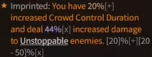 Cette légendaire vous donne 20% de durée de contrôle en plus, ce qui est très intéressant pour votre Ground Stomp et sa durée d'étourdissement.