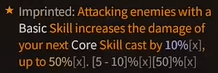 Votre compétence de base (ici Frenzy) va augmenter les dégâts de votre prochaine compétence principale de 10% jusqu'à 50%. C'est un très bon passif qui s'accorde très bien avec votre compétence de base "Frenzy".