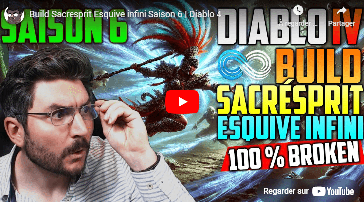 Le Build Sacresprit Esquive infini est l’un des builds les plus rapides de la Saison 6 de Diablo 4 si ce n’est le plus rapide, spécialisée dans l’esquive et la mobilité extrême. Avec une vitesse d’exécution incroyable, ce build repose sur la capacité à enchaîner les esquives tout en infligeant des dégâts massifs grâce à la Pointe de foudre et à d’autres compétences. C’est un build optimal pour ceux qui veulent traverser les contenus à grande vitesse, que ce soit pour le farming ou l’exploration des zones dangereuses.