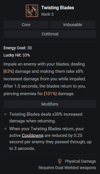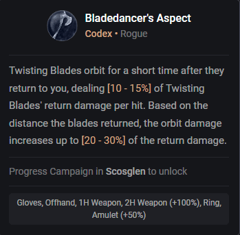 Cet aspect va produire des lames autour de vous au moment où vous utilisez "Twisting Blades", ce qui va énormément vous aider à vous débarrasser des monstres autour de vous et grandement augmenter votre DPS au corps à corps.
