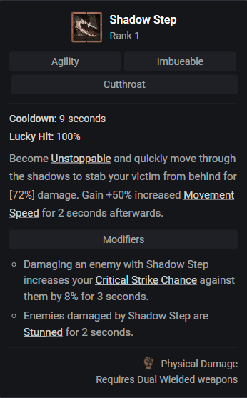 Toujours plus de mobilité avec le Shadow Step qui vous permettra de sprinter, optimisant ainsi rapidement votre positionnement et vous offrant un meilleur contrôle sur vos cibles.