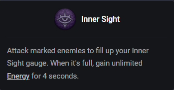 Inner Sight est très intéressant pour ce build, car il vous permettra d'enchaîner rapidement vos capacités, ce qui rend le build particulièrement mortel.