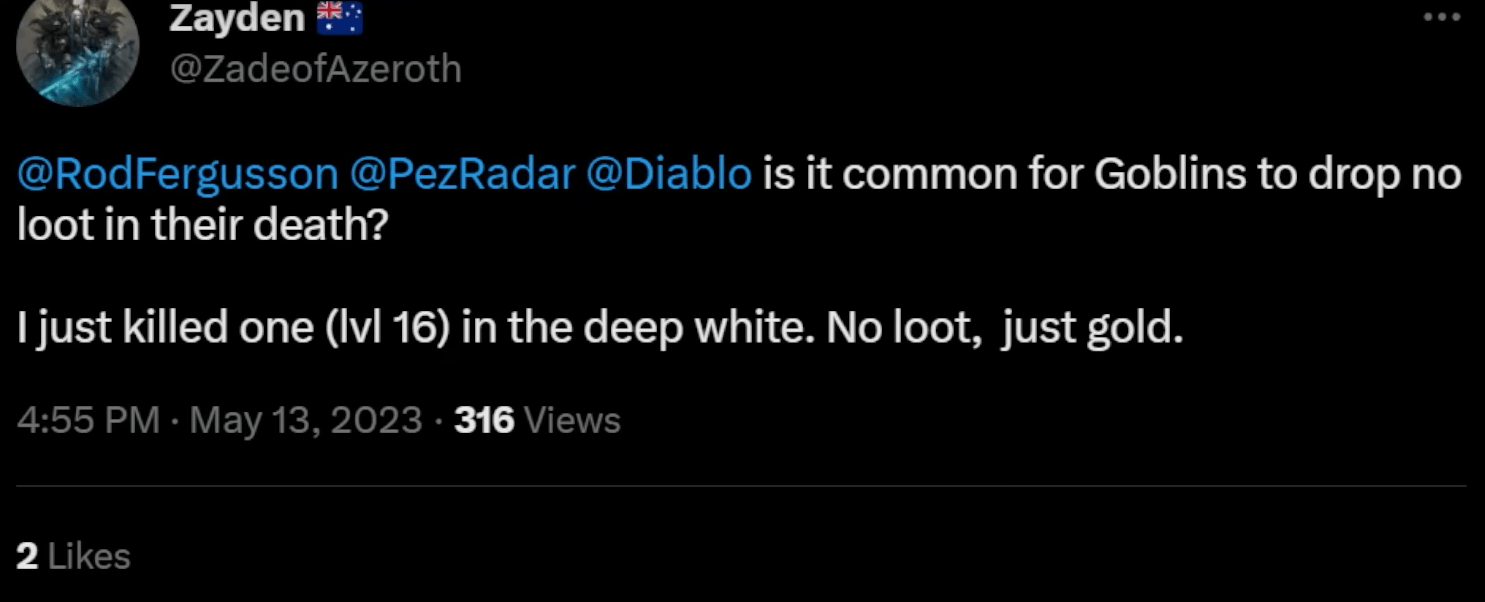 Moi ça me surprend la remarque sur le taux de drop. Le probleme c’est que certaines personnes ont vu le taux de drop de la bêta précedente et ils pensaient à tord avoir un drop identique. Il faut pas que Blizzard se laisse avoir par ces commentaires sinon ça va vite finir comme D3 ou ça tombe sans arrêt!!!