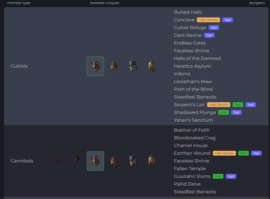 Le site va vous fournir la liste des donjons abritant les monstres capables de vous fournir votre objet !