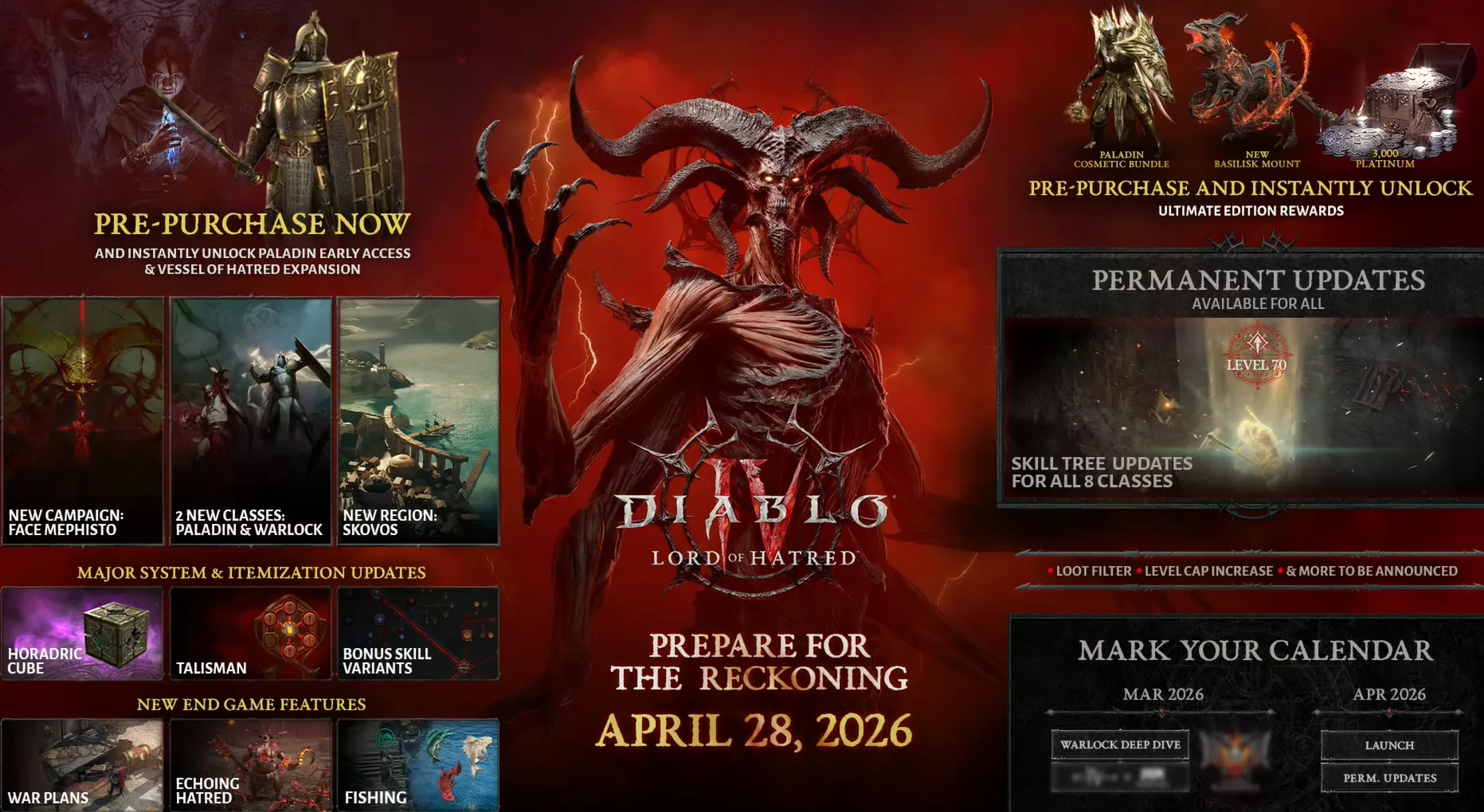 Lors du Feu de camp du 5 mars 2026, Blizzard a levé le voile sur deux sujets très attendus : le Démoniste, la nouvelle classe qui débarquera avec l’extension le 20 avril, et la Saison 12 « Season of Slaughter », qui ouvre ses portes dès le 10 mars (Heure de Paris : 18h00 ).
