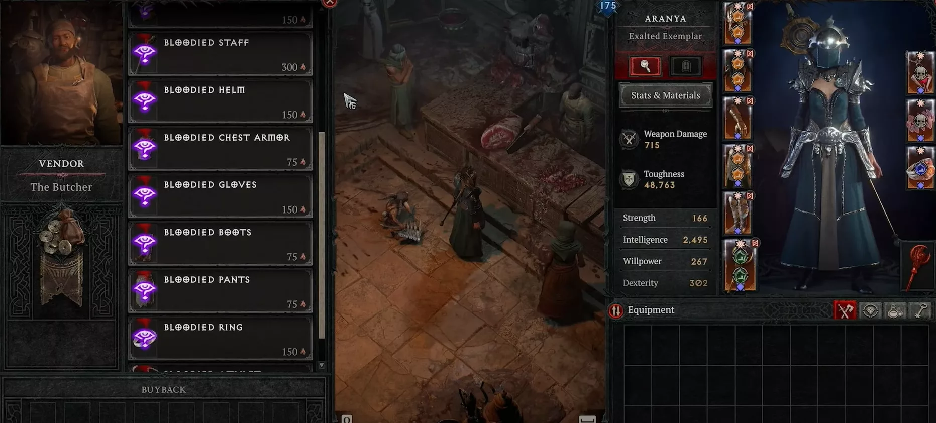 Ces kill streaks permettent aussi d’engranger des objets Sanglants, une nouvelle catégorie d’équipement avec des effets spéciaux liés aux enchaînements. Un vendeur dédié propose ces objets en ciblant précisément le type voulu, répartis en trois catégories : Rampage pour les armures, Feast pour les armes, et Hunger pour les bijoux. Ce système incite clairement à garder le rythme de combat sans jamais s’arrêter — idéal pour le farm en Helltide ou en Hordes Infernales.