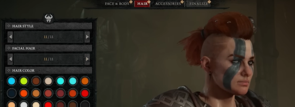 Les cheveux ajoutent énormément de personnalité à votre personnage. Il existe plusieurs options pour le style des cheveux et des poils du visage, ce qui offre un grand choix pour créer entièrement la tête de votre personnage Diablo afin de satisfaire votre vision.