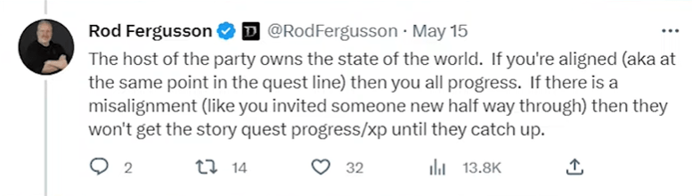 Voici un poste très intéressant sur twitter qui explique un peu mieux comment cela se passe quand vous allez faire la quête principale avec vos amis :