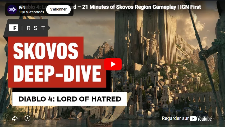 La vidéo nous offre un premier tour d'horizon de la carte de Skovos. On découvre un terrain vaste, avec des zones bien distinctes les unes des autres. Pour les fans de lore, c'est un régal visuel.
