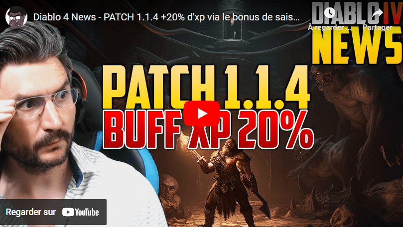 Diablo 4 News – PATCH 1.1.4 +20% d’xp via le bonus de saison et les dernières informations !