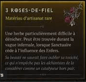 - Il y a également une abondance de composants essentiels tels que les roses de fiel ou les âmes oubliées, qui sont indispensables pour améliorer votre équipement de haut niveau.