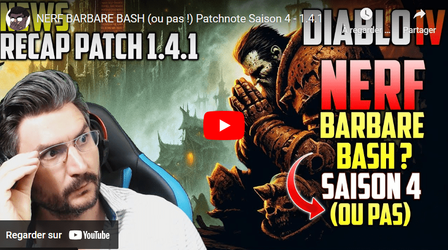 Donc les barbares Bash, pas d’inquiétude, aucun nerf sur ce build, et d’ailleurs pas de nerf en général sur ce patch que des améliorations globalement dont voici le résumé. Si vous voulez le patchnote complet, il y a la traduction FR ici avec le lien vers l’original en anglais.