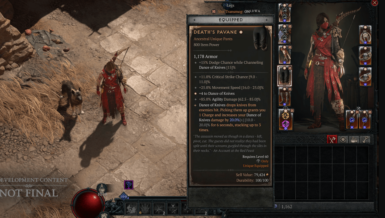 - Inhérent : +15% de chances d’esquive pendant la canalisation de Danse des couteaux