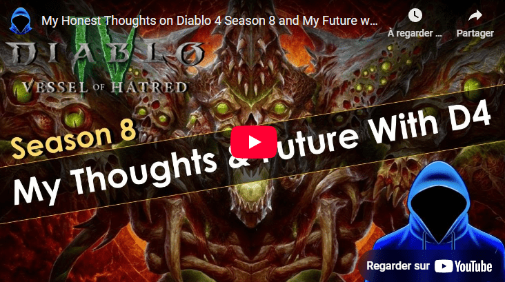 En conclusion, Raxxanterax reste attaché à Diablo IV mais adopte désormais une approche mesurée vis-à-vis du jeu. Il affirme apprécier Diablo 4, qui demeure pour lui un hack’n’slash plaisant, mais il reconnaît ne plus y jouer aussi intensivement qu’auparavant. À l’heure actuelle, il préfère s’y adonner par petites sessions occasionnelles, sans chercher à “try-hard” constamment comme il a pu le faire à la sortie ou lors des premières saisons.