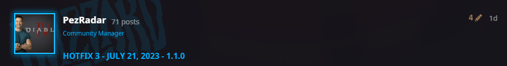 Correction d'un problème où le taux de chute global des Cendres Aberrantes à Helltide était inférieur à ce qui était prévu. Correction d'un problème où les Graines de Haine pouvaient être collectées à un rythme extrême lors de l'utilisation du buff Choix de la Haine contre les minions nécromanciens et les familiers druides. Ce buff a maintenant été réactivé avec ce correctif. Divers