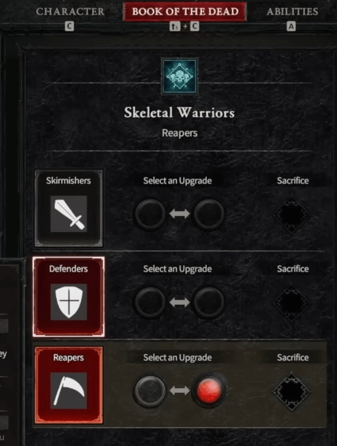La mécanique de classe unique du Nécromancien est le Livre des Morts. Une toute nouvelle capacité leur permettant de dominer le champ de bataille avec une personnalisation plus poussée de leur armée de morts-vivants que jamais auparavant : Trois invocations personnalisables : les Guerriers squelettes, les Mages squelettes et le Golem. Chaque invocation dispose d'une des trois spécialisations parmi lesquelles vous pouvez choisir.