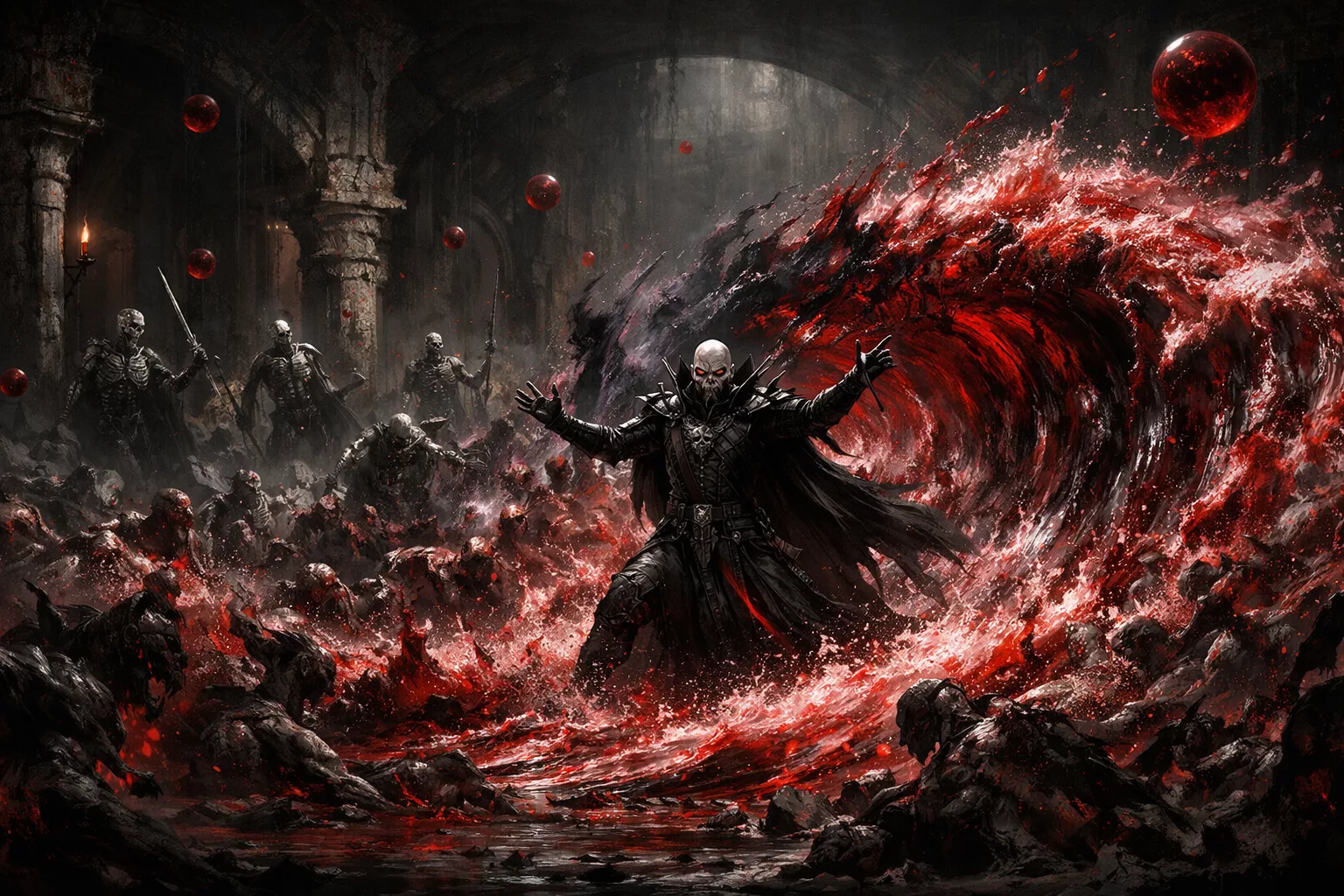 Vague de sang → Explosion macabre (consomme un cadavre) →
