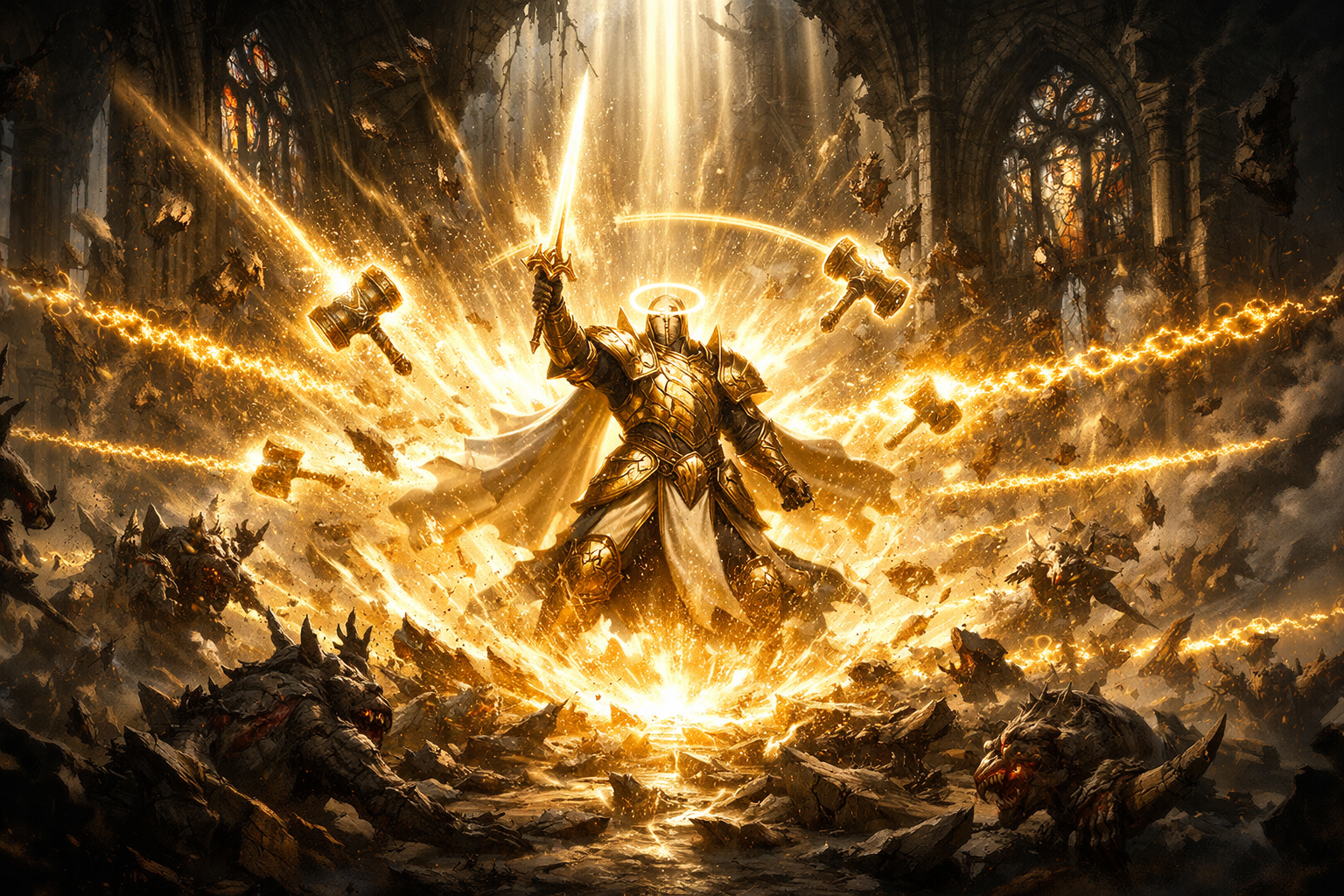 Lance des Cieux entre en jeu, chaque lance portant un Jugement d’Auriel capable d’interagir avec les autres effets pour creer des reactions en chaine devastatrices.