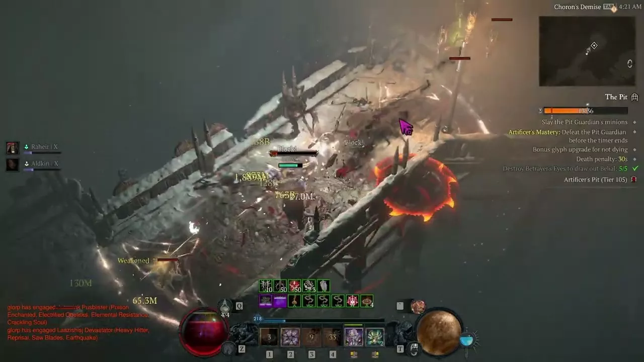 Atteignez 100% de Chance de Blocage permanent pour éviter les pics de dégâts massifs. Visez 70 000+ d'Armure en ville et 3 000+ de Force. Si vous avez du mal en haute difficulté, remplacez des stats offensives par de la Vie Maximum sur vos pièces, et utilisez des consommables défensifs comme Soothing Spices et Elixir of Iron Barbs II. Vous pouvez aussi remplacer une rune offensive par Mot,