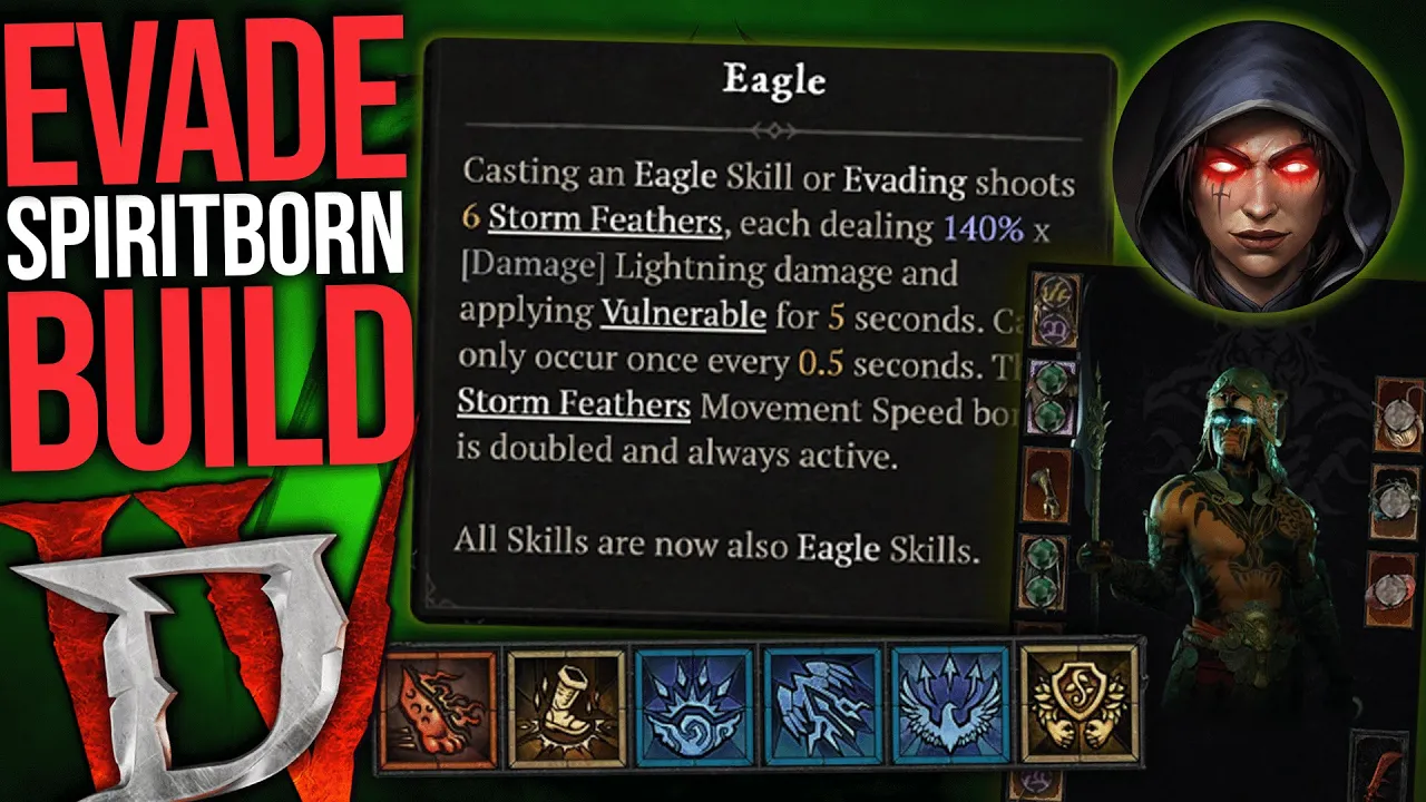 Le principe est simple : le Hall Principal Aigle (Eagle Main Hall) lance des Plumes de tempete (Storm Feathers) a chaque fois que vous utilisez l'esquive ou une competence Aigle. Combine avec une reduction massive du temps de recharge de l'esquive, le build atteint le stade Perma-Esquive ou vous n'avez plus qu'a spammer l'esquive en continu pour detruire toute opposition.