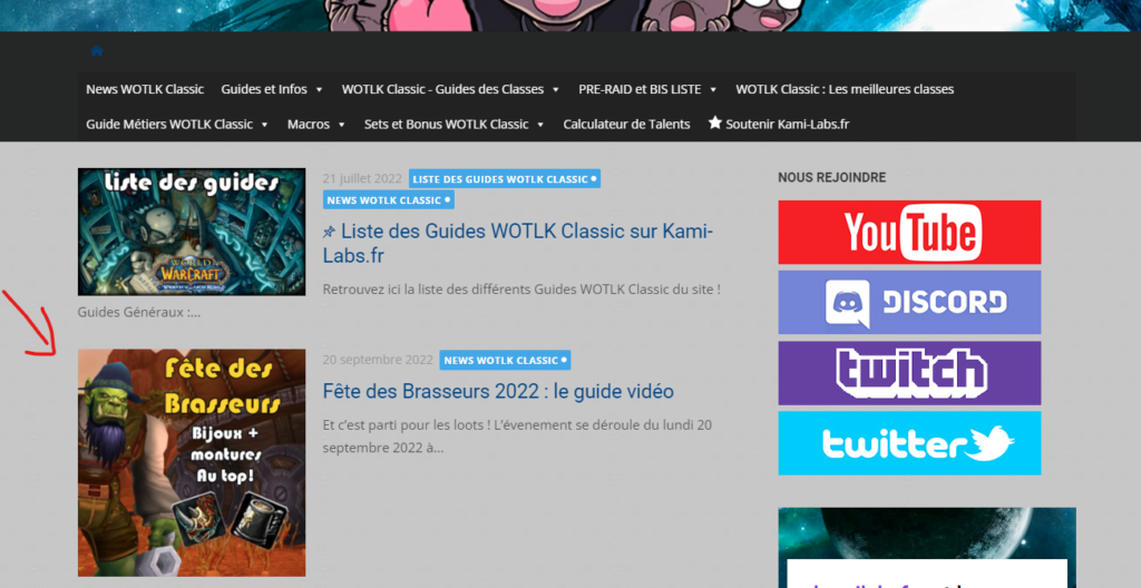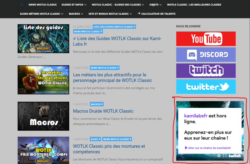 Le site Web possède plusieurs possibilités pour vous aider à développer votre stream et augmenter votre nombre de viewers avec des visiteurs intéressés par du contenu sur WOW Classic.