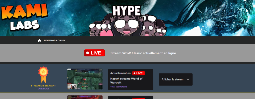 Le site Web possède plusieurs possibilités pour vous aider à développer votre stream et augmenter votre nombre de viewers avec des visiteurs intéressés par du contenu sur WOW Classic.