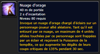 Nuage d’orage : Augmente les dégats Critiques de 135%, Il faut courir vers ses collègue afin d’augmenter leur dégats, pensez aussi à charger votre tank pour qu’il tienne l’agro.