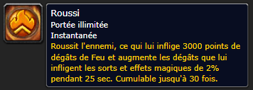 Roussi : Vous donne une chance d’appliqué un débuff sur le boss qui fait des dégâts de feu directe plus jusqu’à 60% de dégâts magique augmenté avec 30 stack.