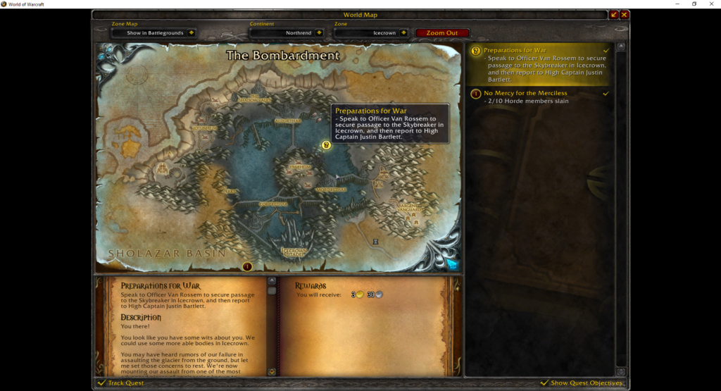 Cela vous débloque ensuite toutes les quêtes de la zone. Pour les objets de réputation il faut faire la suite de quête qui commence ici avec Thassarian