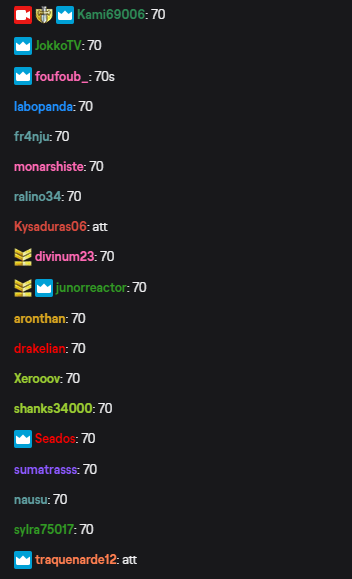 Par exemple si j’ai le 70, je dois donc écrire 70 dans le chat