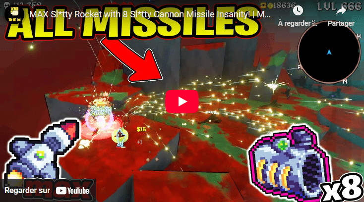 - Missiles (« Slutty Rocket ») : Votre source unique de dégâts. Ces projectiles à tête chercheuse sont l’alpha et l’oméga de votre offensive. L’objectif est de les améliorer jusqu’à ce que l’écran ne soit plus qu’un ballet mortel d’explosions.