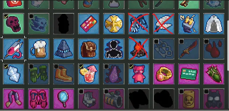Le succès de ce build repose sur l’obtention de deux objets bleus qui, ensemble, créent une boucle de rétroaction infinie. Pour identifier d’autres objets clés, référez-vous à notre Tier List Megabonk : Le Classement des meilleurs Objets.