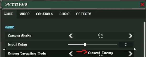 • Allez dans les paramètres et réglez le Mode de Ciblage des Ennemis sur « Ennemi le plus proche » avec une distance de 0.25. Cela garantira que les menaces immédiates sont éliminées en priorité.