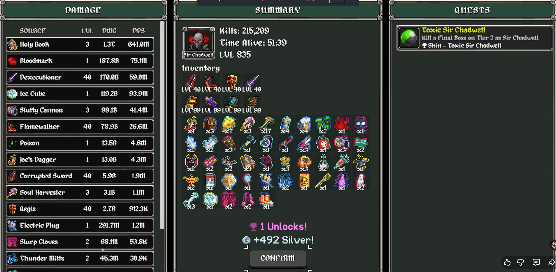 L’idée centrale est simple : ne pas combattre la difficulté, mais l’embrasser. Le passif de Sir Chadwell est une source gratuite et infinie de « Malédiction » ce qui libère la place pour un tome offensif supplémentaire., le modificateur qui augmente la quantité et la force des ennemis. En combinant cela avec les Tomes d’Expérience et de Fortune, vous créez une boucle vertueuse : plus d’ennemis > plus d’XP > plus de niveaux > de meilleures récompenses. C’est une stratégie à haut risque qui paie des dividendes monstrueux. Le but n’est pas seulement de tuer, mais de transformer l’arène en une ferme à XP et à objets légendaires. Des objets comme le Moissonneur d’Âmes ou le Livre Sacré, considérés comme les meilleurs du jeu, deviennent accessibles et transforment votre run en une véritable démonstration de force. Pour savoir quels objets chasser, notre Tier List Megabonk : Le Classement des meilleurs Objets est votre meilleure alliée.