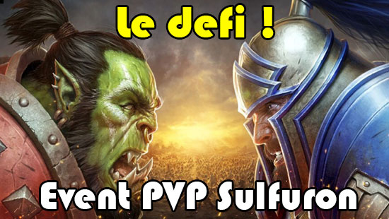 Yo la guilde ! Lundi 15 septembre à 21h, La horde et plus précisément la guilde <SAVAGES>, lance un défi à l’alliance de Sulfuron !