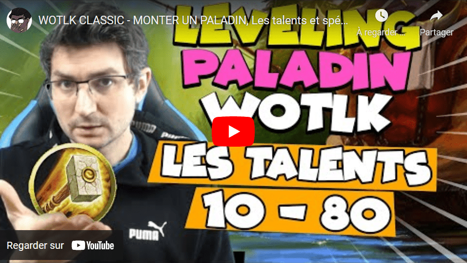 Voici une video qui vous donnera toutes les informations pour monter votre paladin sur WOTLK ! Il ne manque juste que le guide pour monter en AOE grind qui sera bientôt disponible pour les membres Youtube !