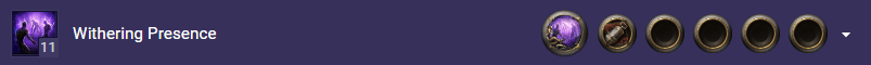 Explication du sort : Fournit un bonus persistant et applique flétrissement (wither) aux ennemis proches, augmentant les dégâts de chaos subis.