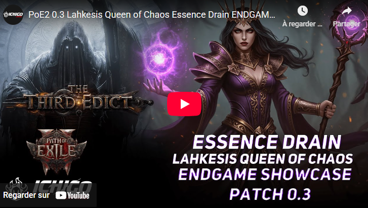 Ce guide est dédié à l’optimisation du build Lahkesis, Reine du Chaos, en se concentrant sur les dégâts sur la durée (DoT) de la compétence Drain d’essence (Essence Drain). Mis à jour pour la version 0.4, ce build utilise l’ascendance de la Liche (Lich) pour dominer le contenu de fin de jeu (endgame). Ce build offre un équilibre unique entre une puissance offensive écrasante et une capacité de survie stratégique, permettant de nettoyer des écrans entiers d’ennemis instantanément.