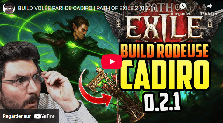 Ce build “Volée en spirale” repose sur l’ascendance Deadeye , combiné au nouveau carquois unique Tourniquet de Pérandus (Cadiro’s Gambit). Il permet une vitesse de clean spectaculaire en map et une puissance de burst suffisante pour éliminer les boss T4 en un clin d’œil. Avec 70% de vitesse de déplacement, une évasion de 90% et une gestion avancée des charges de frénésie, ce build est taillé pour le contenu endgame.