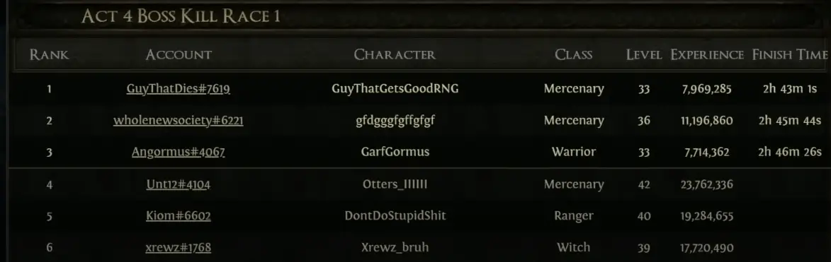Alors que « guy that dies » savourait sa victoire, et que tout le monde attendait Angormus en deuxième position, le classement final de la race Path of Exile 2 a révélé une énorme surprise.