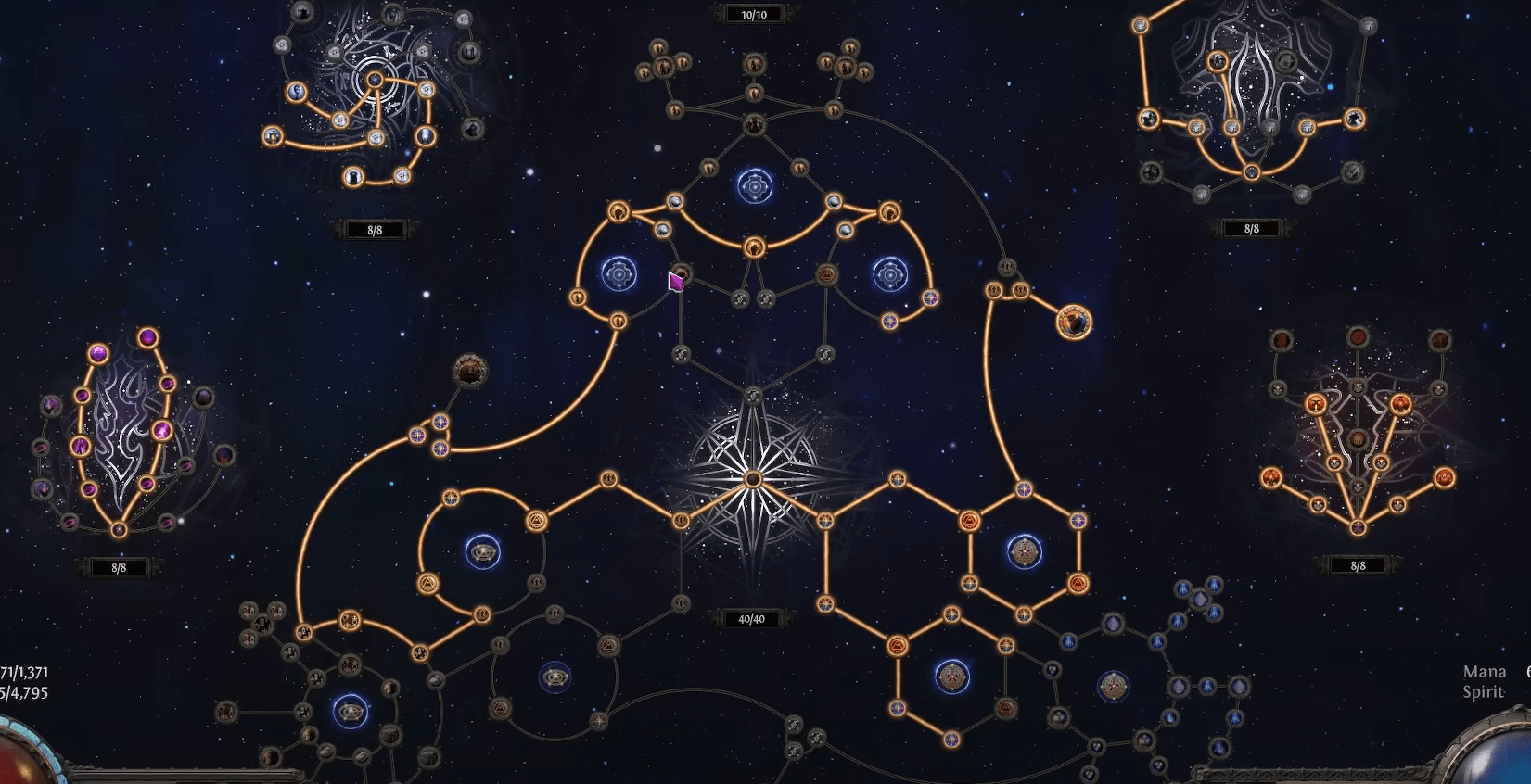 - L’Arbre de l’Atlas : Son arbre est spécialisé dans l’augmentation des effets des cartes et le renforcement des Brèches. Le passif « Unstable Energies » est crucial, car il peut doubler vos statistiques de Rareté, Rares et Quantité, rendant les cartes plus difficiles mais bien plus lucratives.