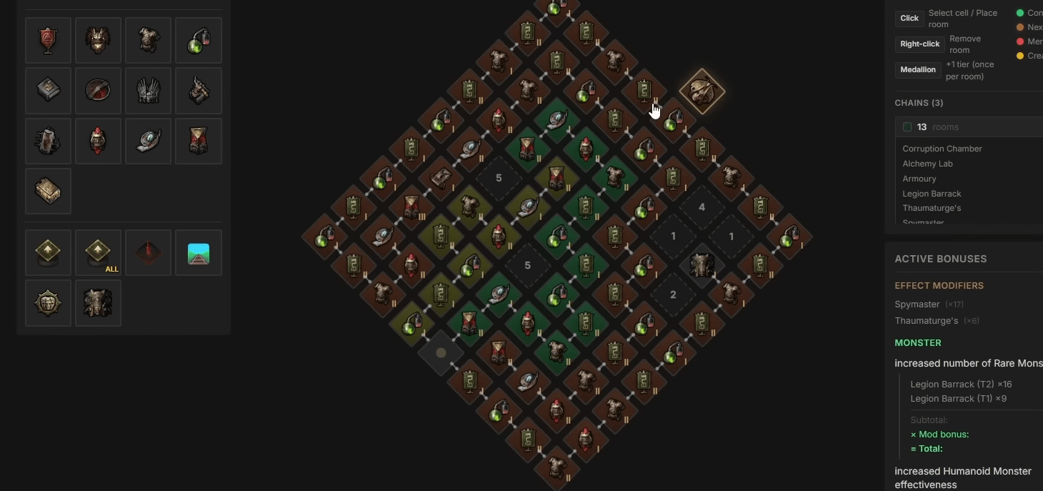 Pourquoi les Spy Masters sont si importants ? Trois raisons. Ils spawnent le plus de monstres rares. Ils donnent +30% d’effet sur les mods de temple (Garrisons, Armories). Et si vous avez 5+ Armories tier 3, un Spy Master supplémentaire rapporte plus qu’une 6ème Armory. C’est mathématique.