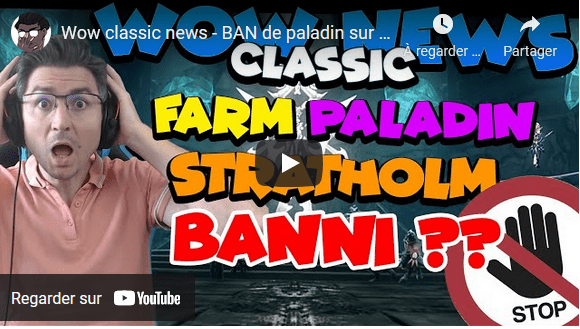 BAN de paladin sur Stratholme ? – Nerf Pallier T4 – Fix bug Pallier T5 Publié le 27 septembre 2021 Ajouter aux favoris ← Voir tous les articles WOW CLASSICArticles similaires9 février 2026Guide Farm d’Essence Éternelle – WOTLK Classic9 février 2026Guide Paladin PVP Protection – WOTLK Classic12 novembre 2025Blizzard en roue libre : WoW devient un « Diablo 4.5 » solo, Mono touche, à 90$ et avec une nouvelle monnaie premium28 juillet 2025WOW MOP : Guide Guerrier Arme PVE