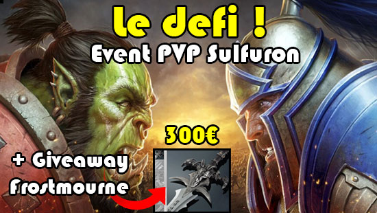 Durant l’event, un GIVEAWAY se déroulera. Vous pourrez y gagner une réplique d’une arme culte de World of warcraft : Frostmourne (Deuillegivre) d’une valeur de 300€ !